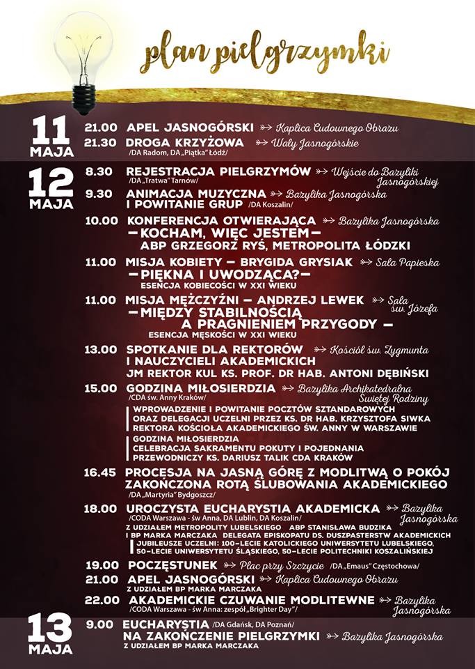 Więcej szczegółów na stronie: pielgrzymkaakademicka.pl.