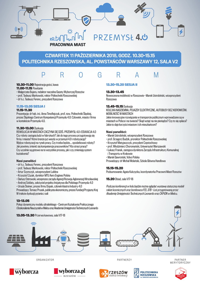 W debacie wezmą udział eksperci, mieszkańcy, studenci, przedsiębiorcy, samorządowcy. Podczas konferencji odbędą się dyskusje o dwóch ważnych dla naszego miasta sprawach, Przemyśle 4.0 i mobilności.